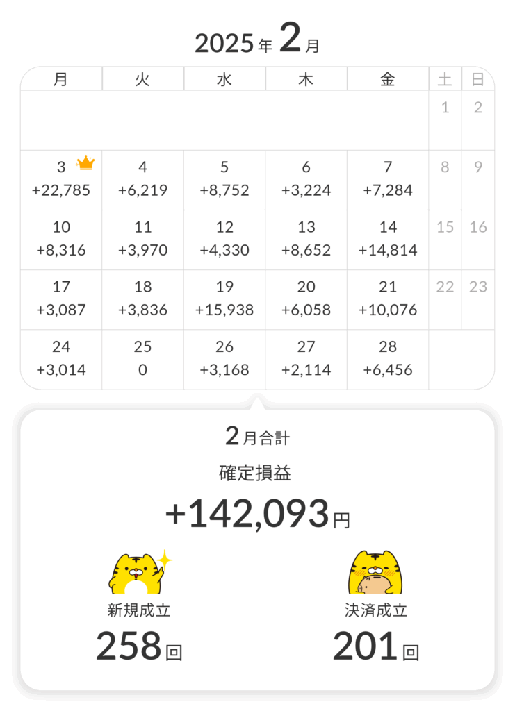 毎月、口座状況と設定を点検して最適化していきます。あとは自動売買に任せることで、時間を確保しながら着実に利益を積み上げられています。運用環境に感謝しています。