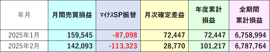 2025年2月時点の入出金累計は3,010万円(先月比変化なし)。
