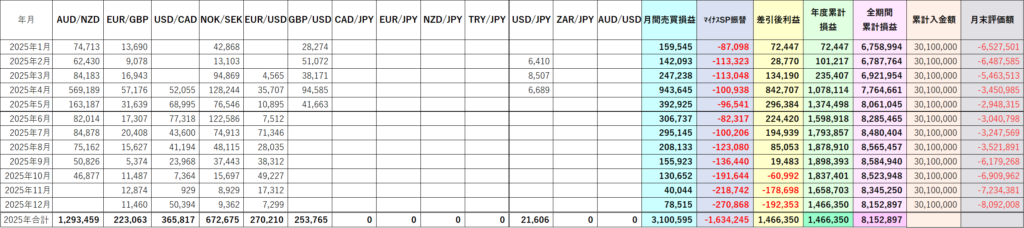 <2025年月間売買損益実績まとめ>
